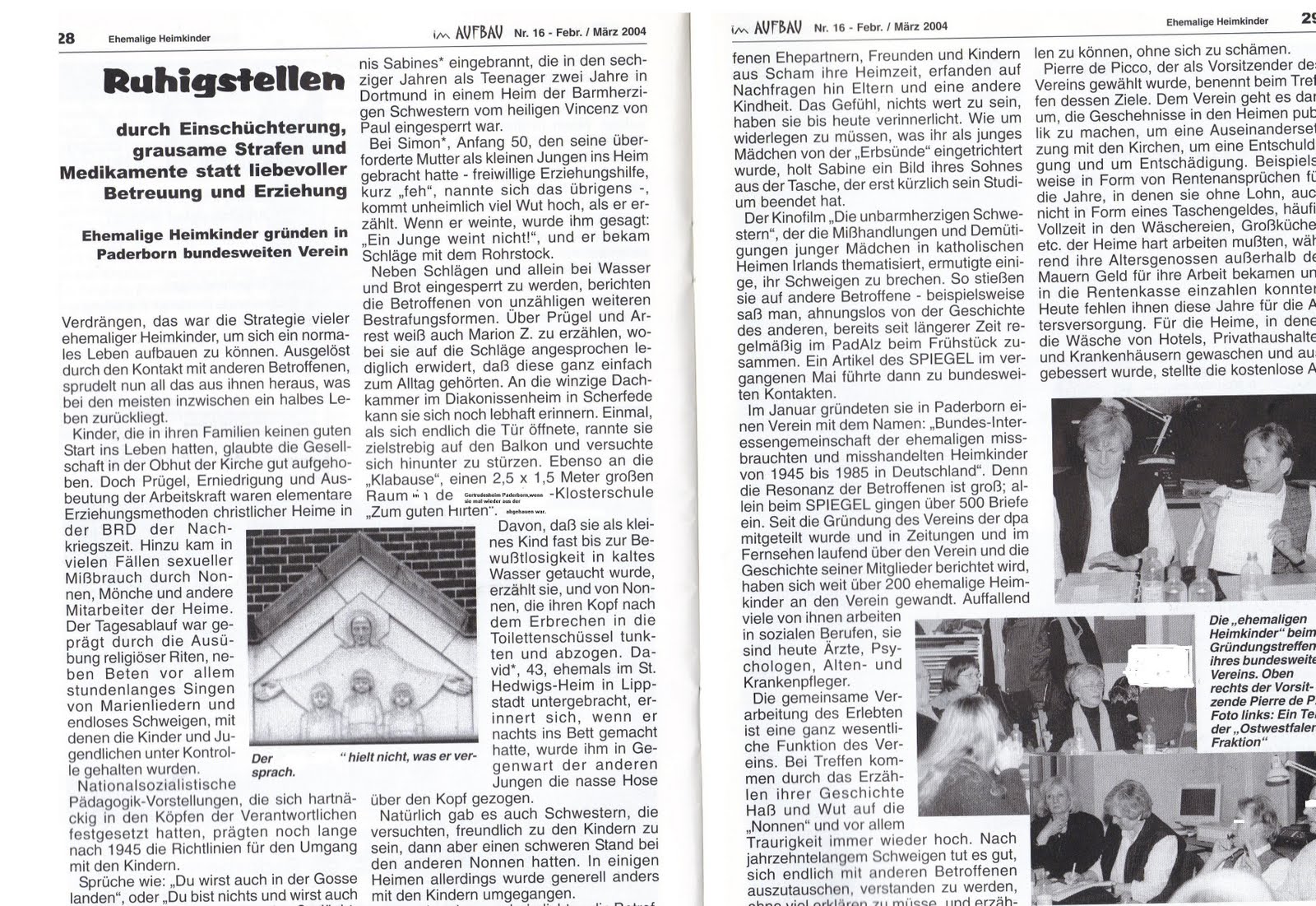 Der GRUNDSTEIN des VEH.ev (Verein ehemaliger Heimkinder) wurde in PADERBORN gelegt.Seit Mai 2009 hat der Verein mit seiner neuen Führung die ehemaligen Heimkinder gespalten.Die Solidarität untereinander, wie die Heimkinder, einst-bis März 2009 in den Anfängen erlebten,ist so nicht mehr gegeben. Der Verein ehemaliger Heimkinder( Veh.ev) lässt den Historie-Blog (Anfänge Verein ehemaliger-Heimkinder) bei Google sperren.